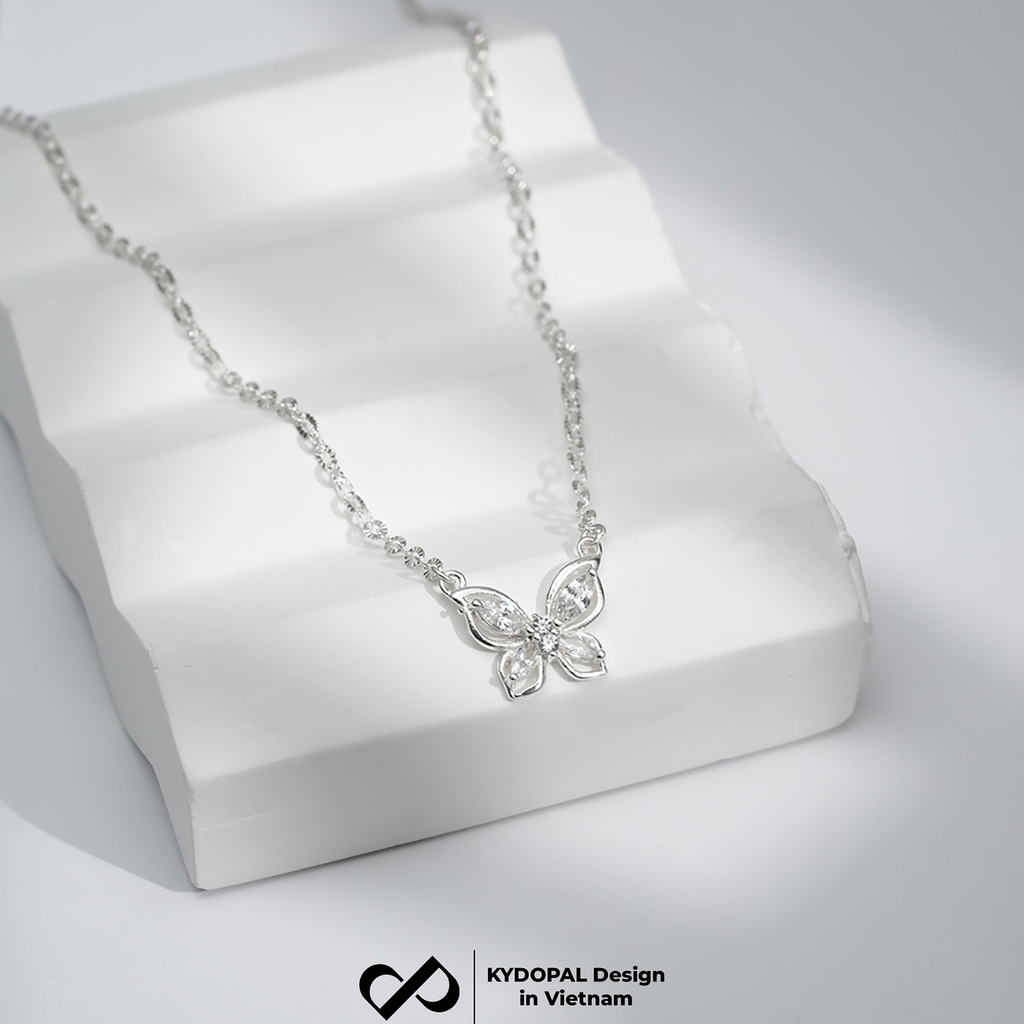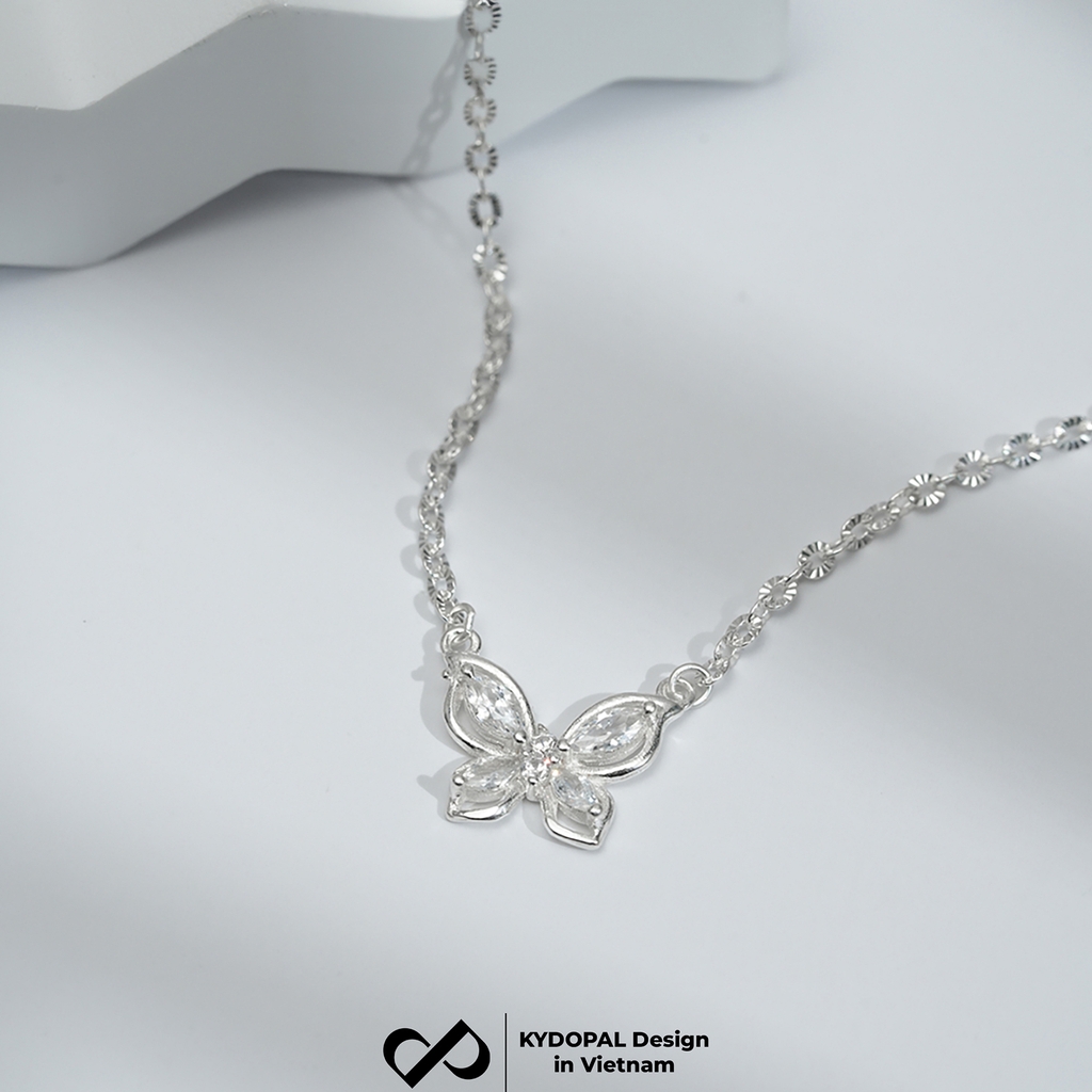 Dây chuyền bạc nữ KYDOPAL hồ điệp đính đá cá tính giọt nước dây hoa chặn trang sức bạc 925 - PAL93C31