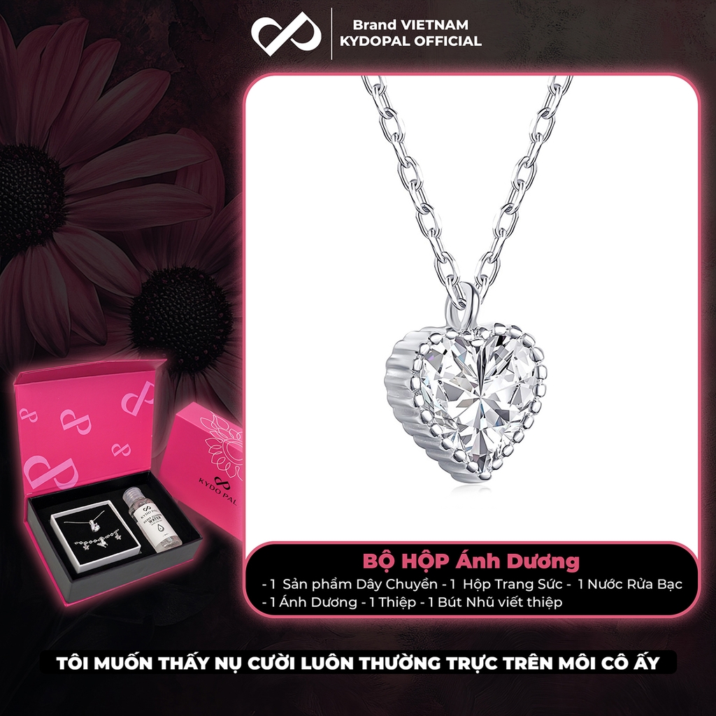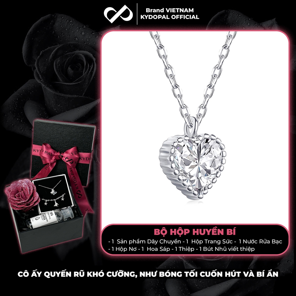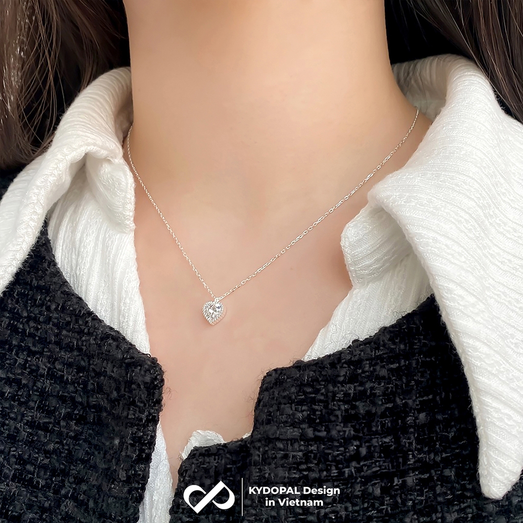 Dây chuyền bạc nữ KYDOPAL mặt trái tim đính đá viền cao cấp trang sức bạc 925 - PAL9C3C12