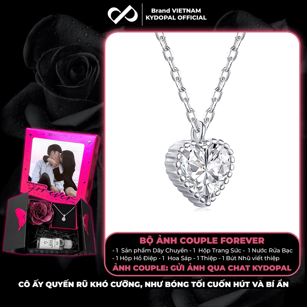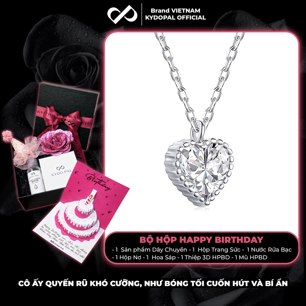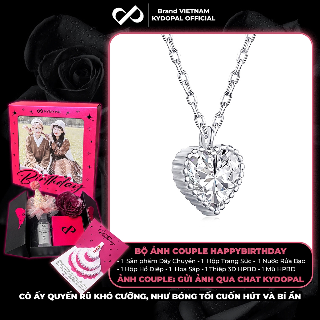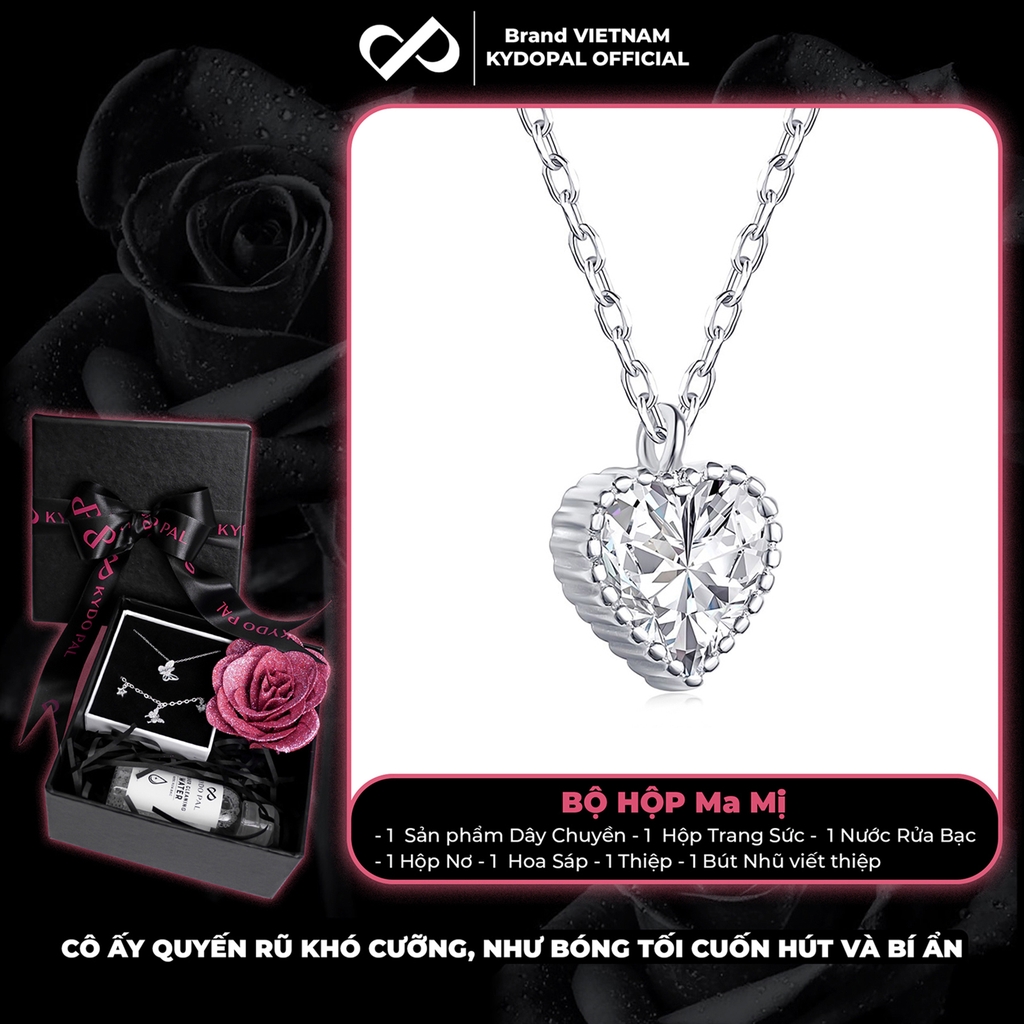 Dây chuyền bạc nữ KYDOPAL mặt trái tim đính đá viền cao cấp trang sức bạc 925 - PAL9C3C12