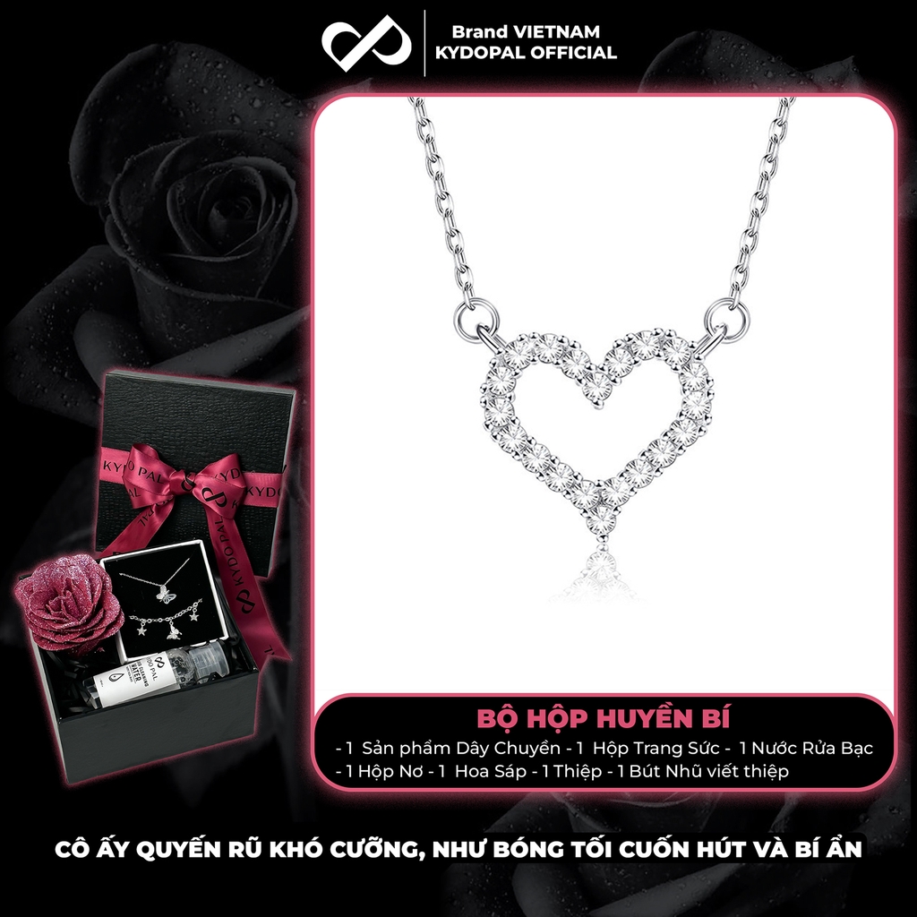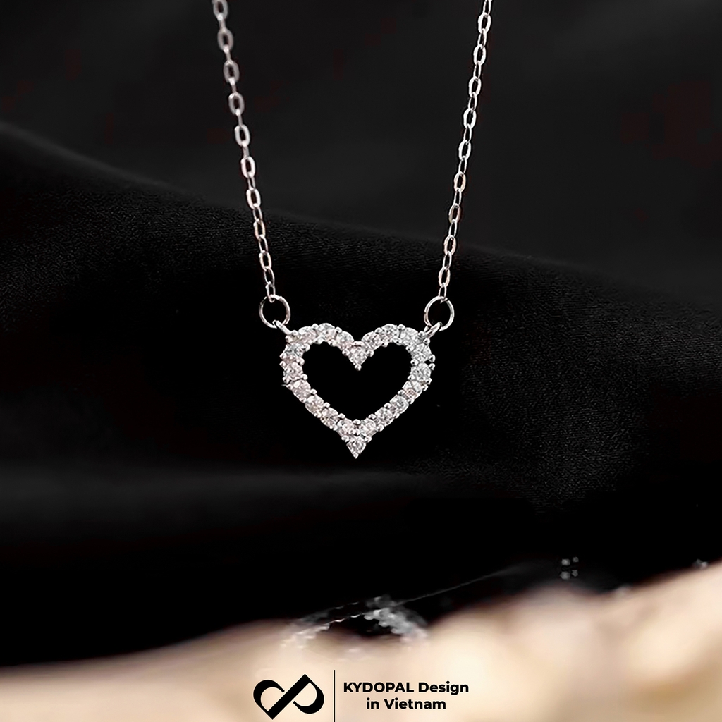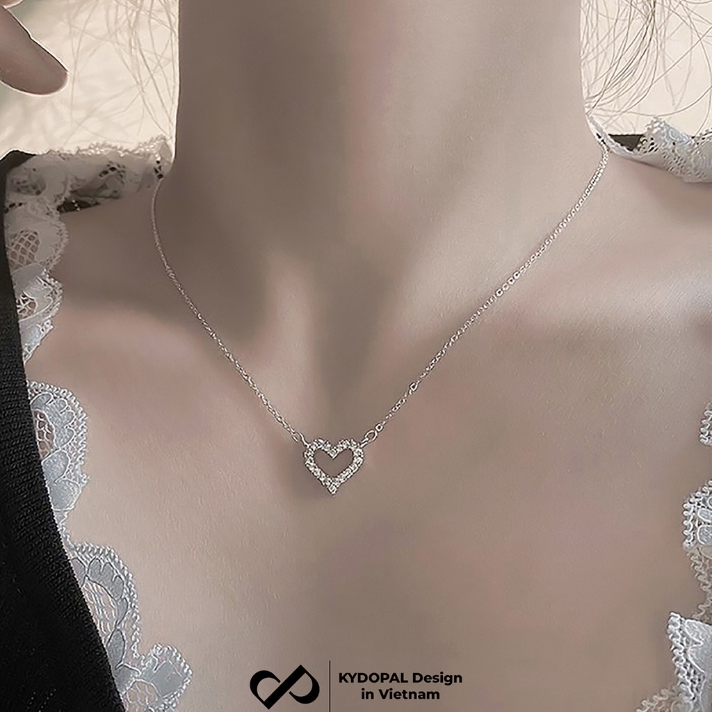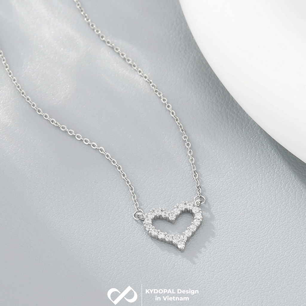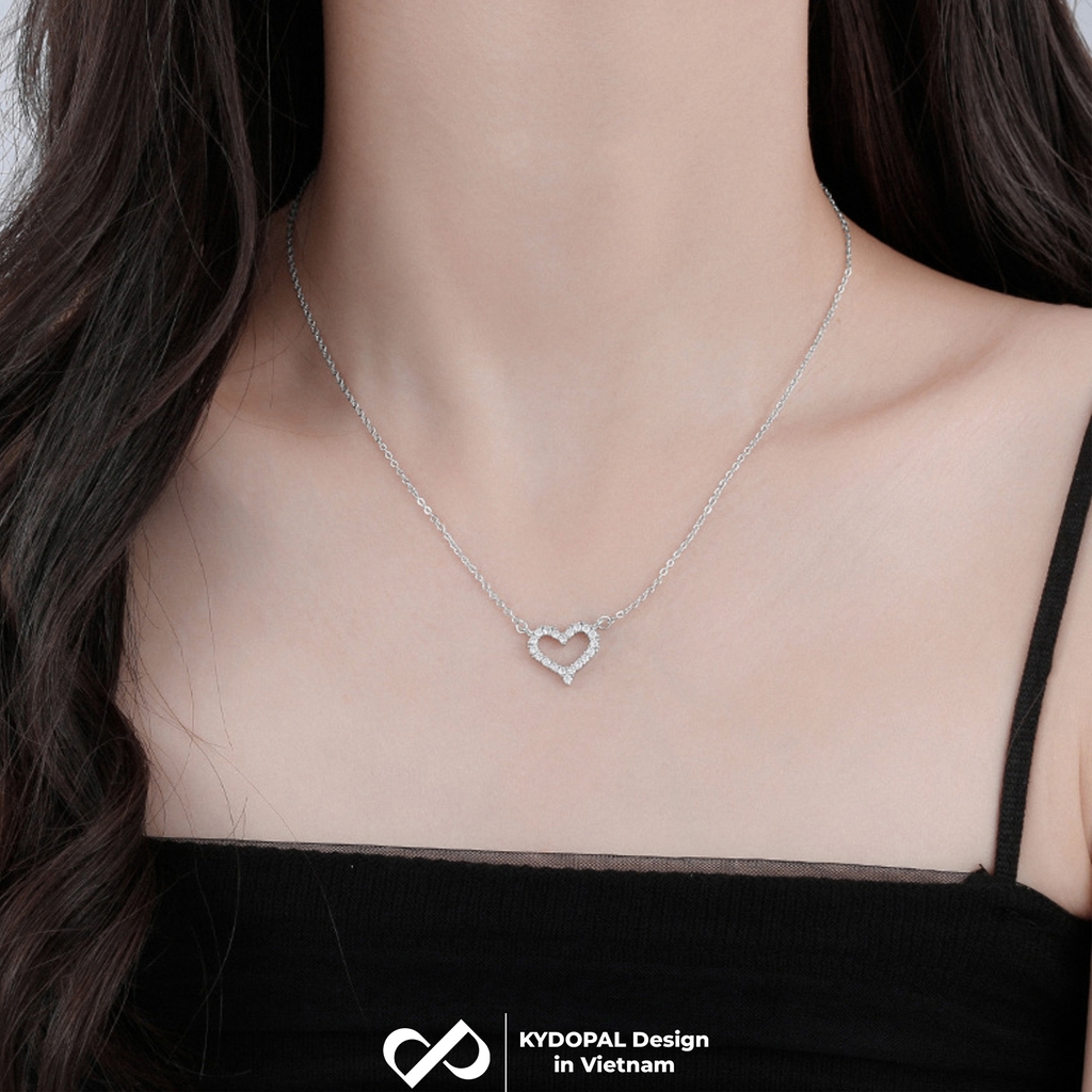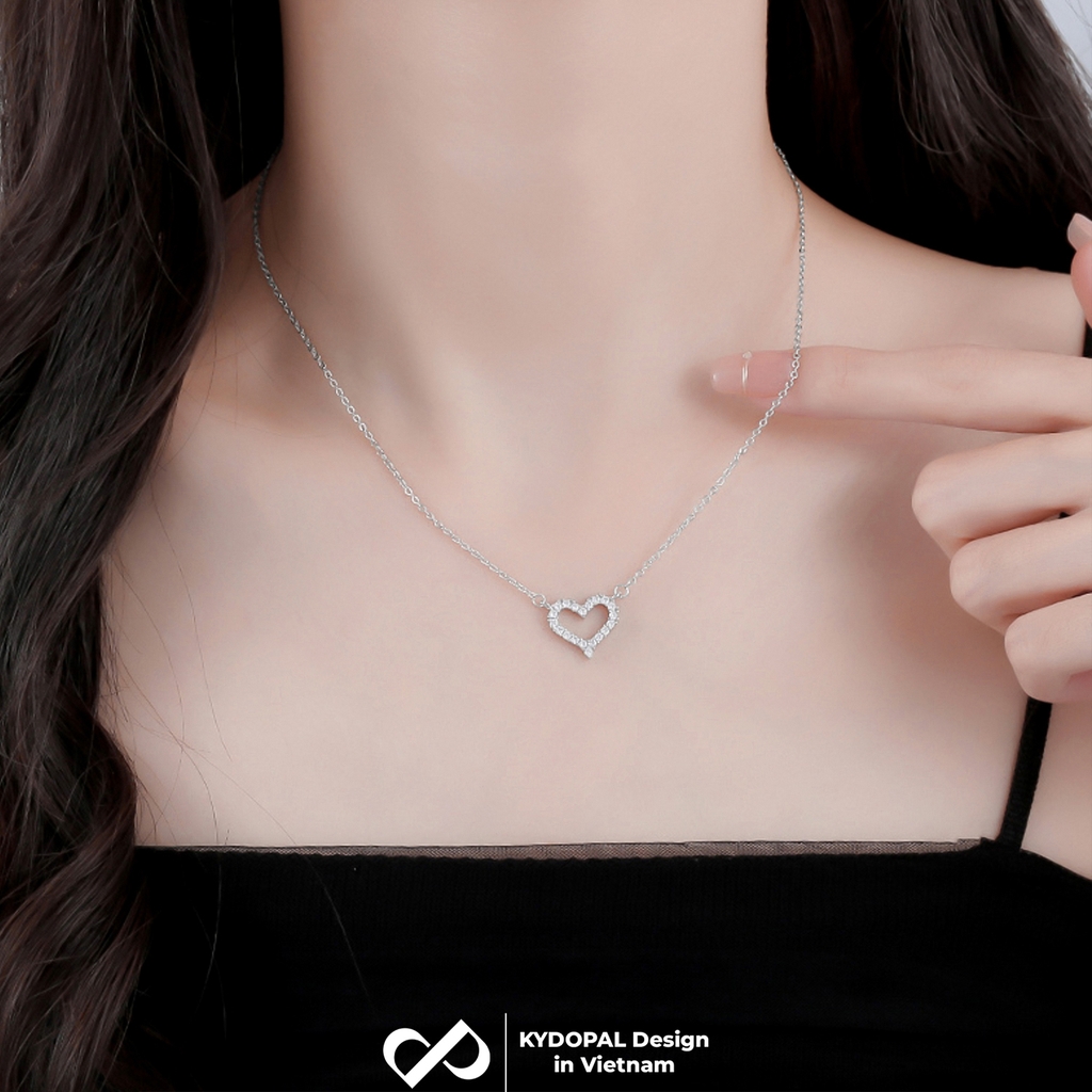 Dây chuyền bạc nữ KYDOPAL cá tính tim rỗng nạm đá viền cao cấp trang sức bạc 925 - PAL9C3C22