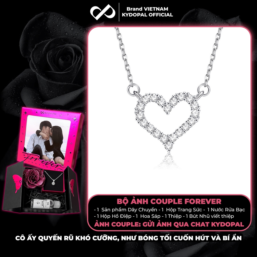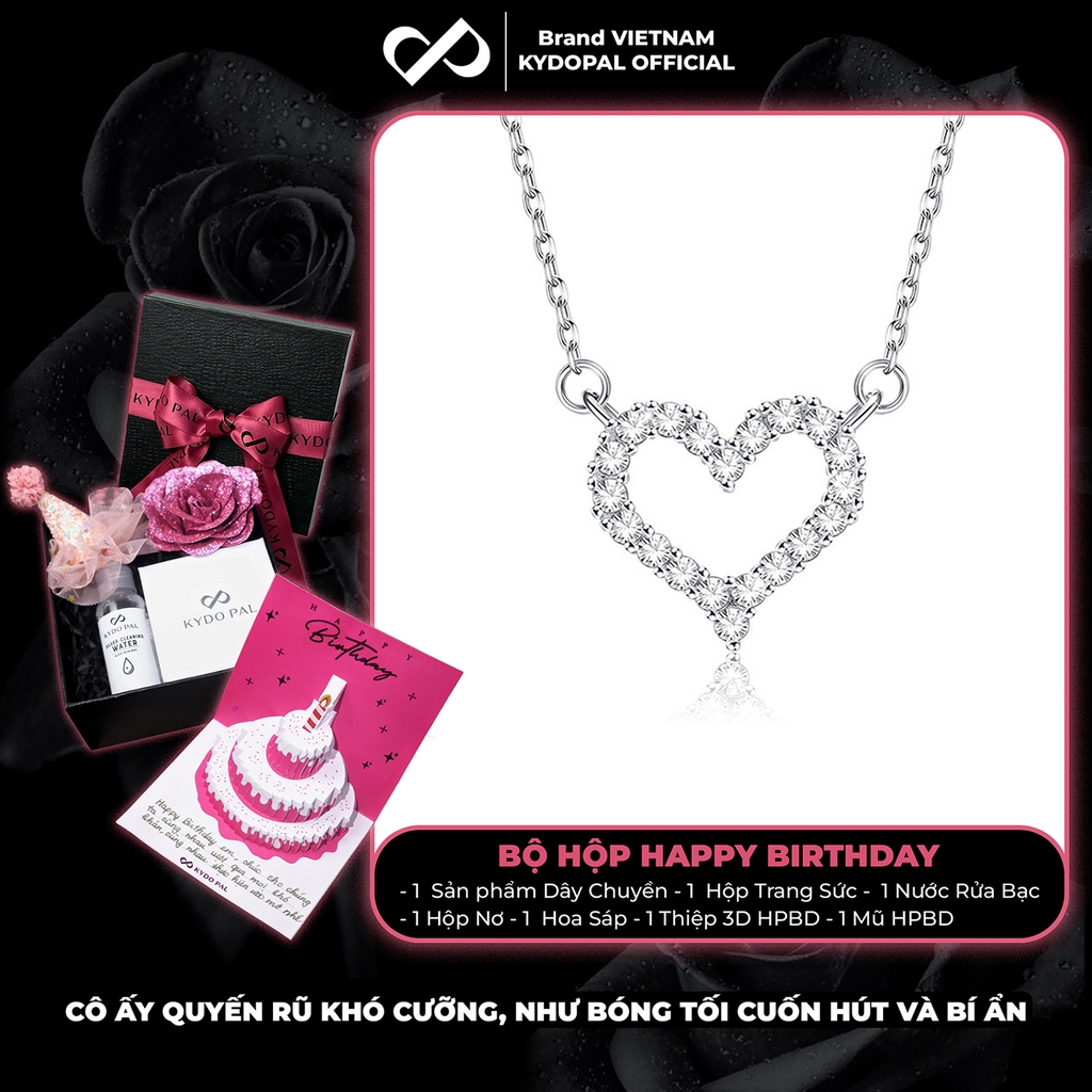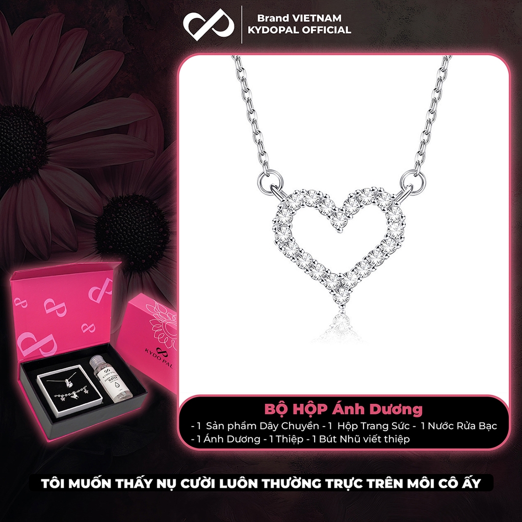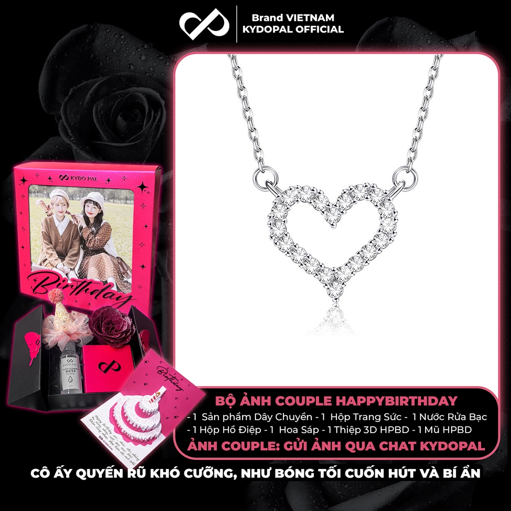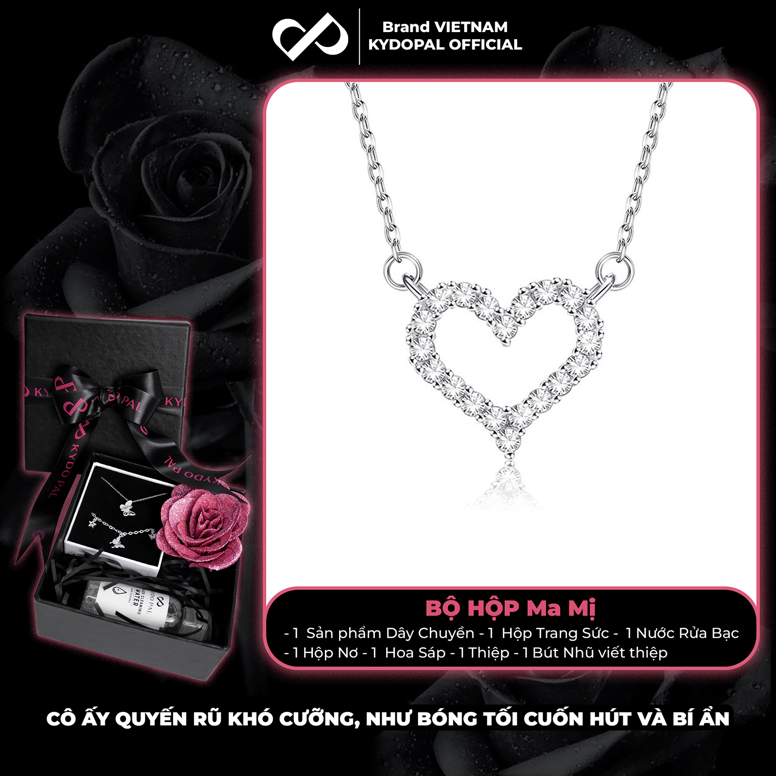 Dây chuyền bạc nữ KYDOPAL cá tính tim rỗng nạm đá viền cao cấp trang sức bạc 925 - PAL9C3C22