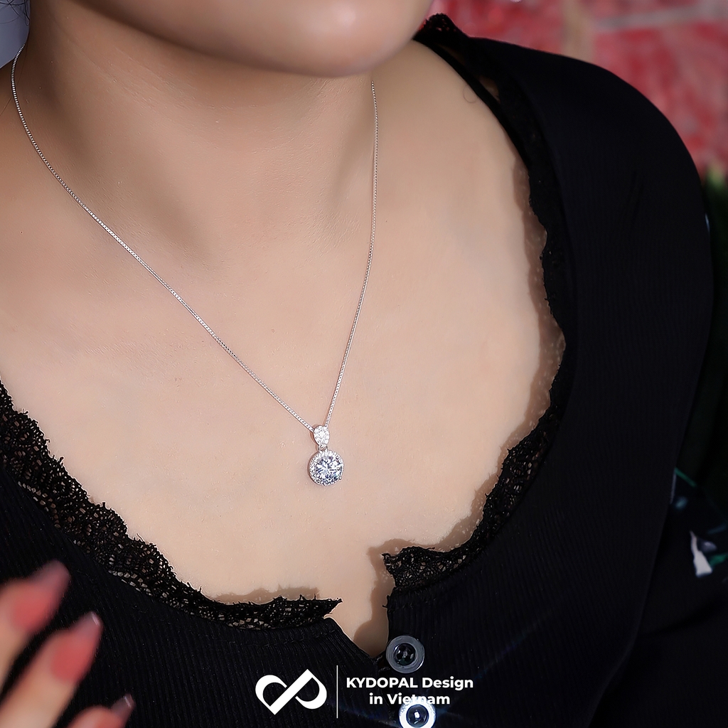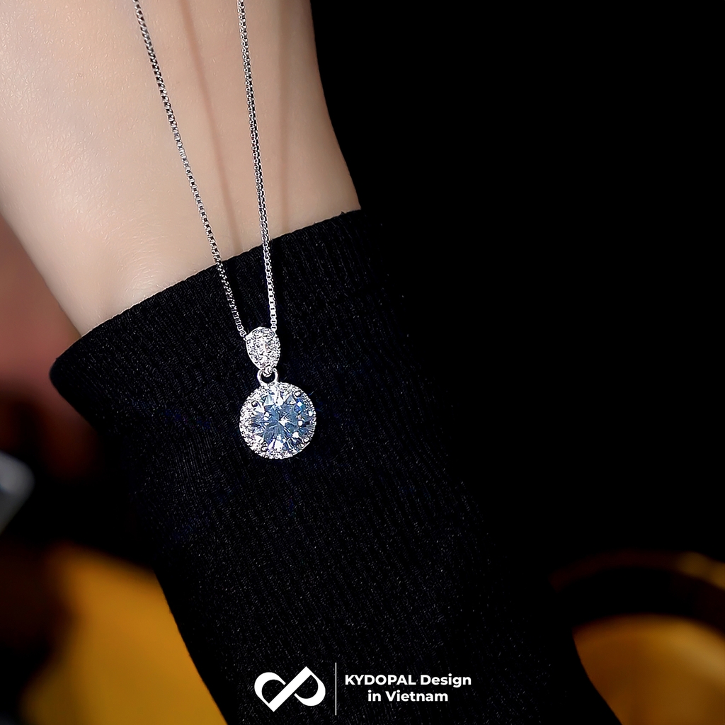 Dây chuyền bạc nữ KYDOPAL mặt đá tròn cá tính nạm đá cao cấp trang sức bạc 925 - PAL9C3C26