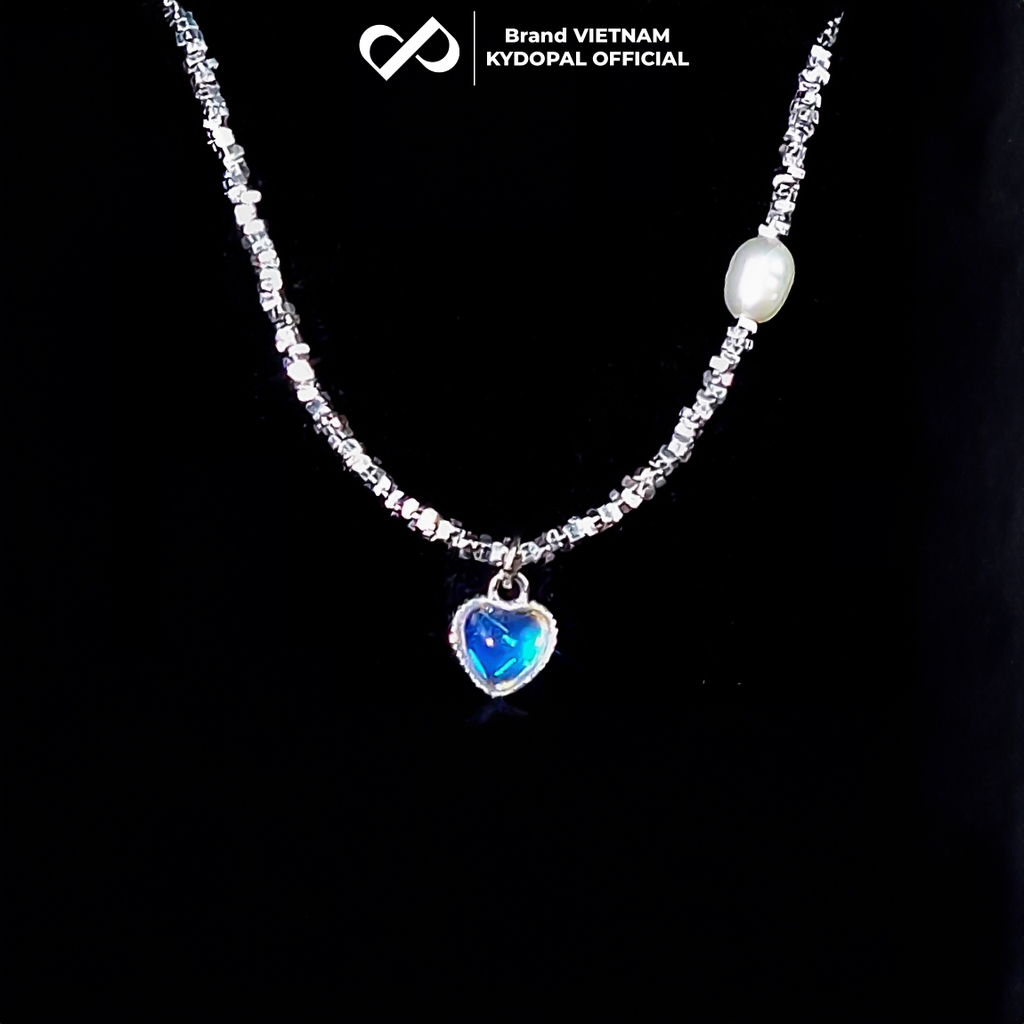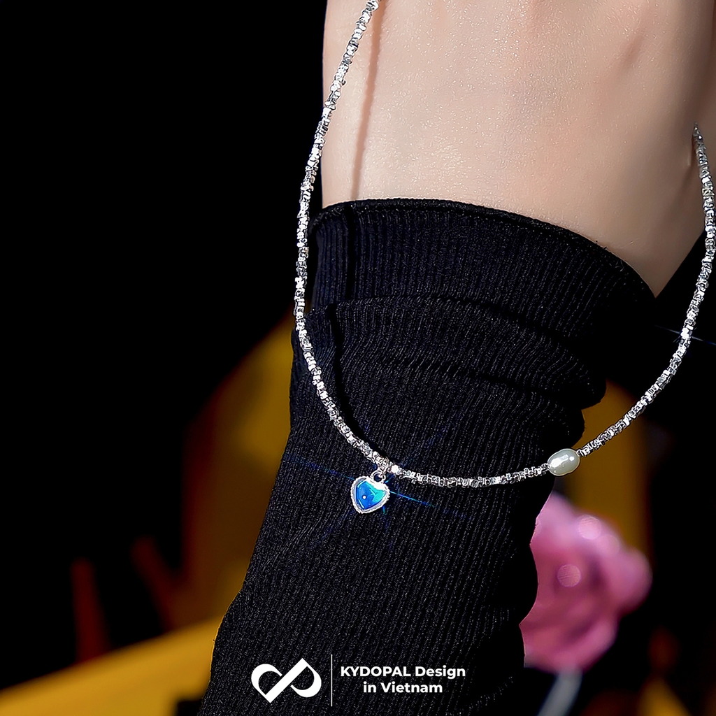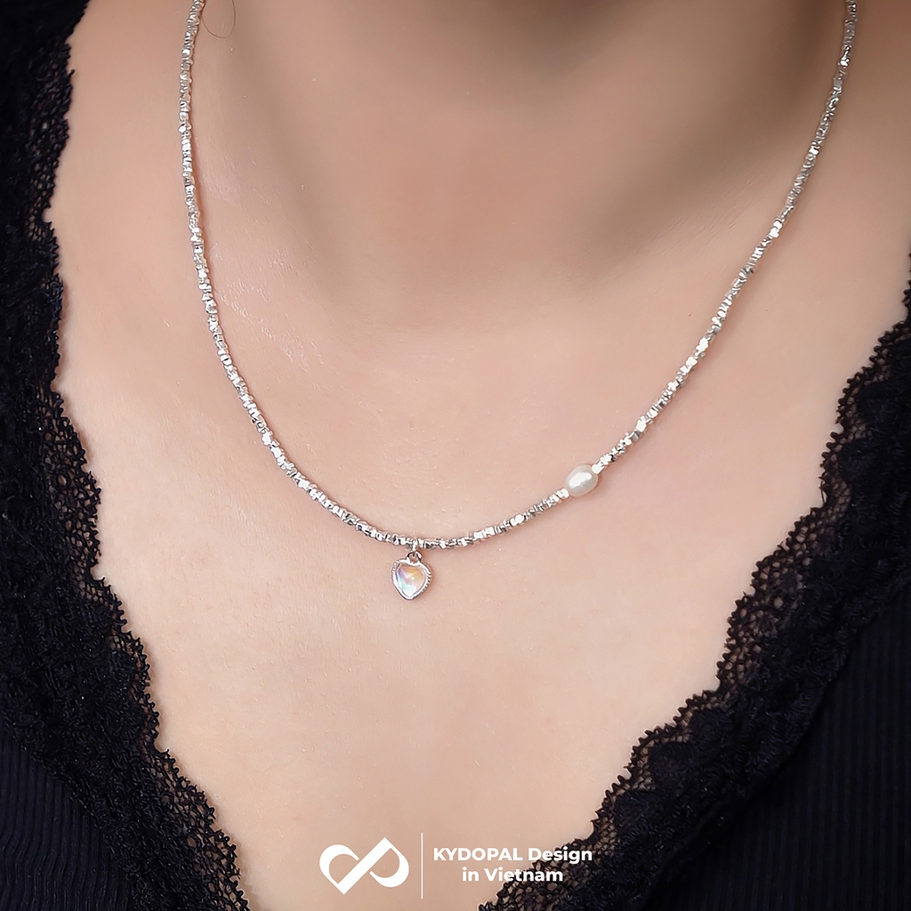 Dây chuyền bạc nữ KYDOPAL vòng cổ trái tim đá moon ánh xanh hạt vỡ nữ trang sức bạc 925 - PAL9C3C36
