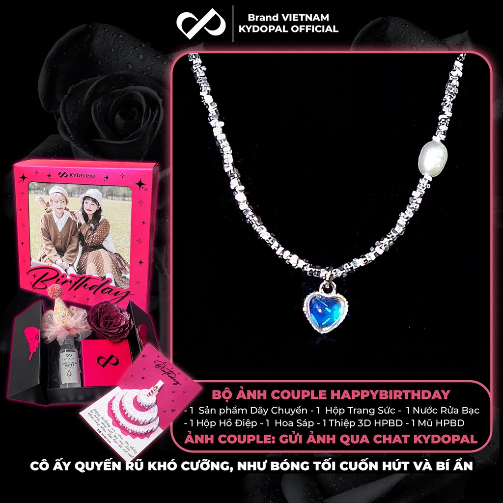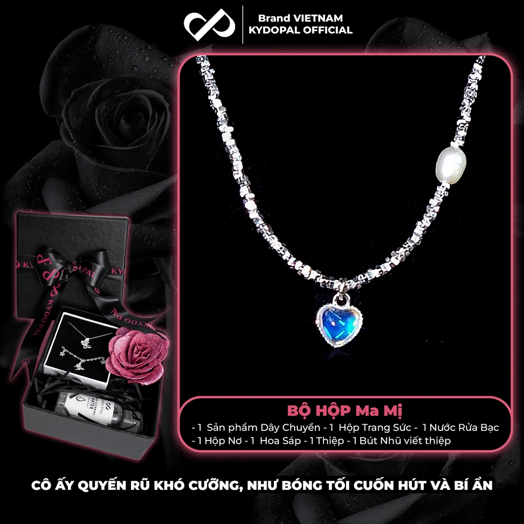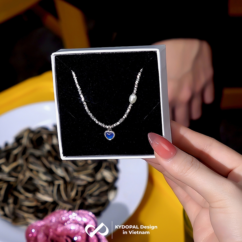 Dây chuyền bạc nữ KYDOPAL vòng cổ trái tim đá moon ánh xanh hạt vỡ nữ trang sức bạc 925 - PAL9C3C36