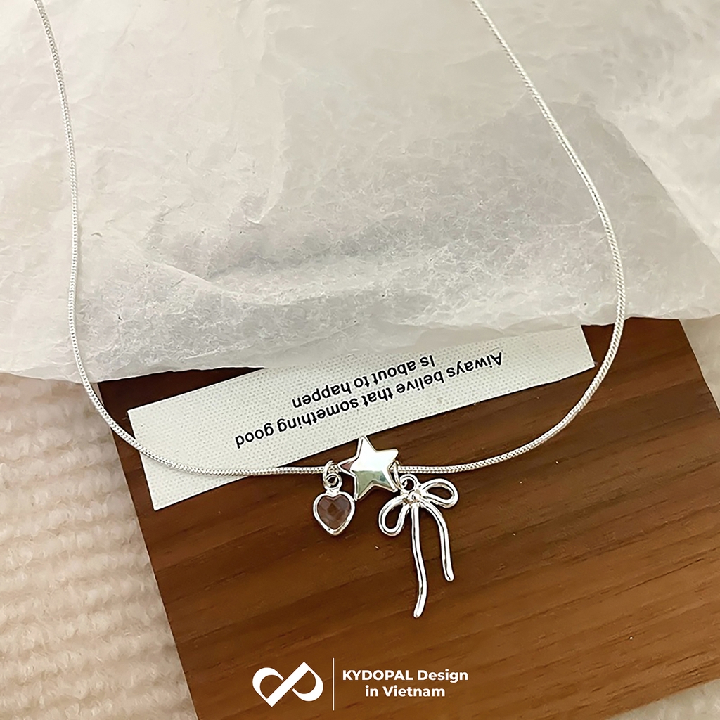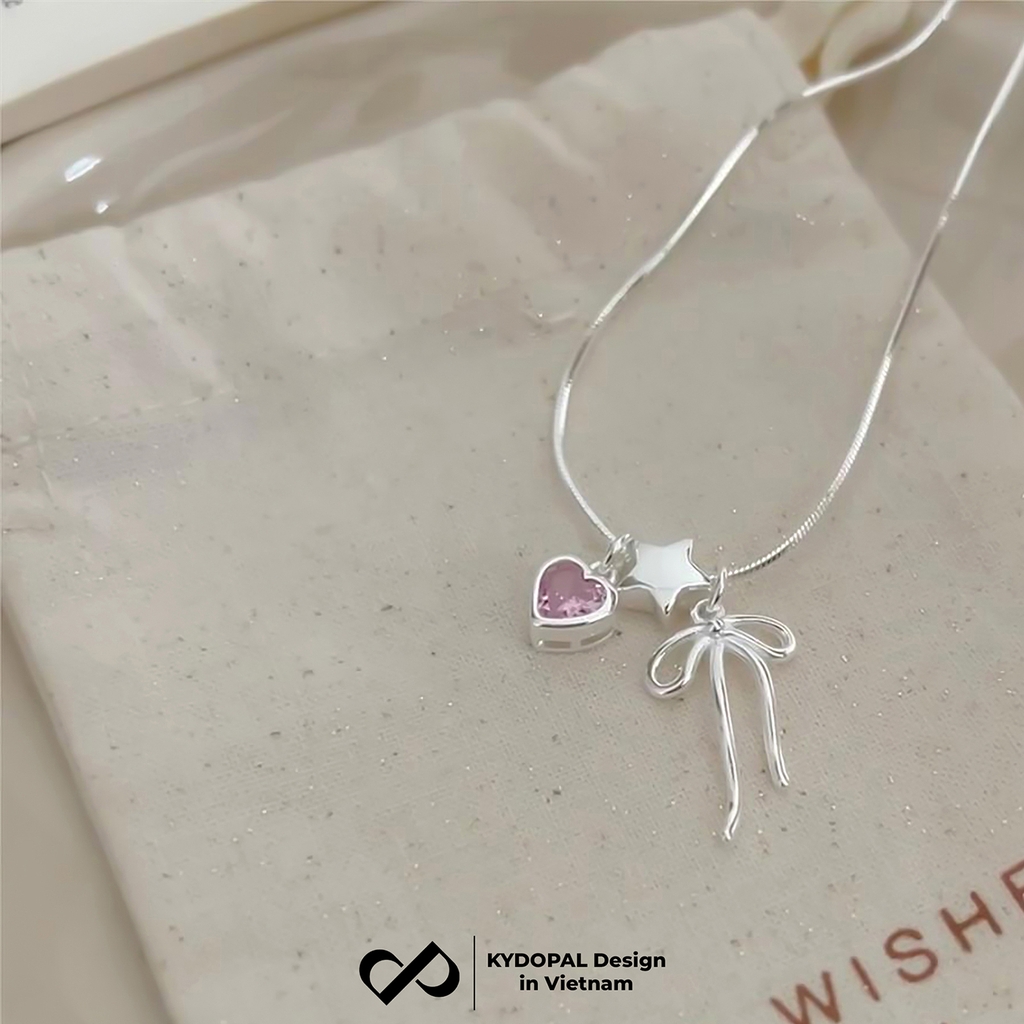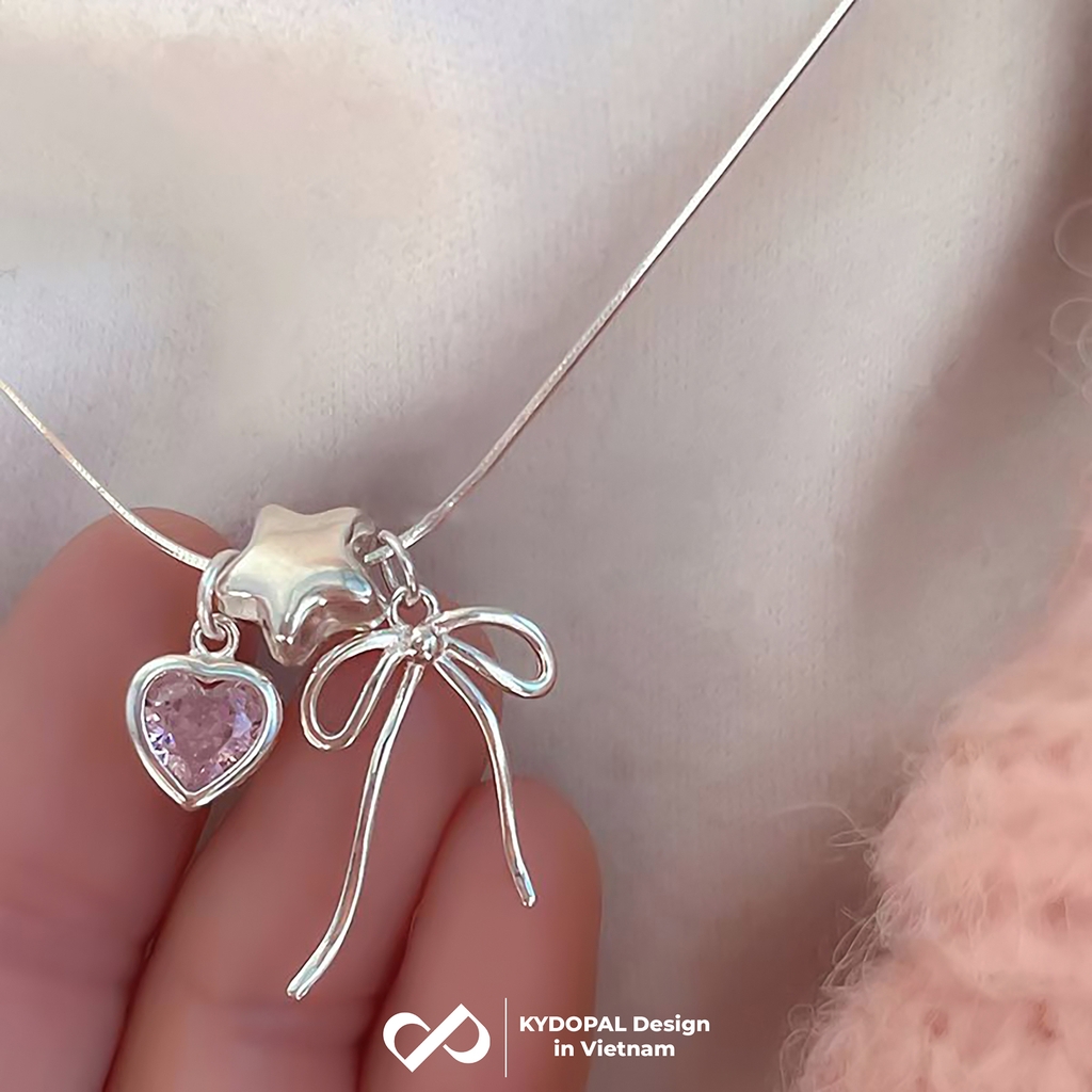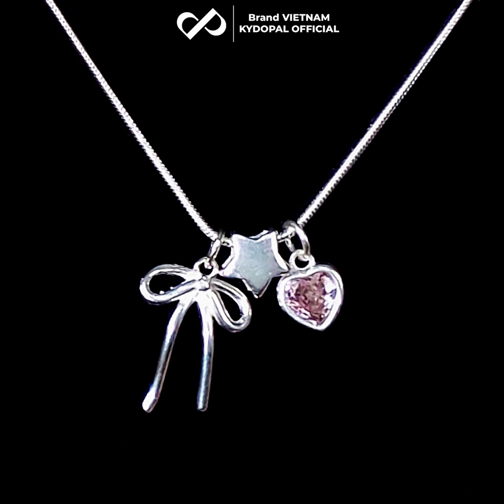 Dây chuyền bạc nữ KYDOPAL cá tính treo Charm nơ thắt, ngôi sao và tim hồng dễ thương - PAL9C3C38