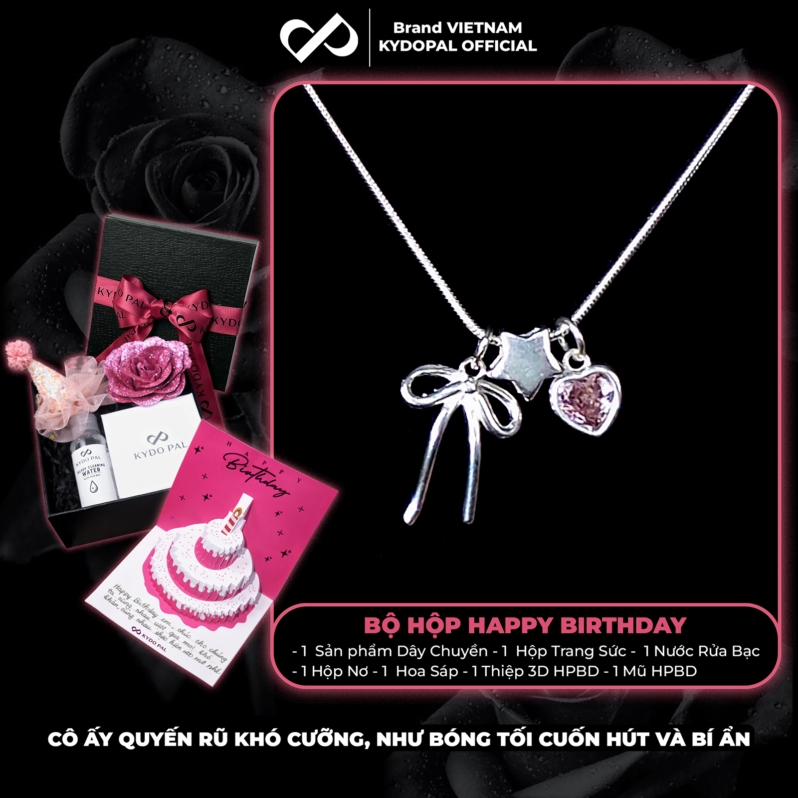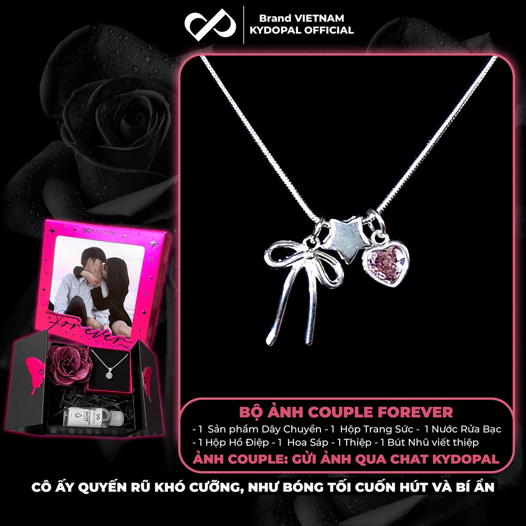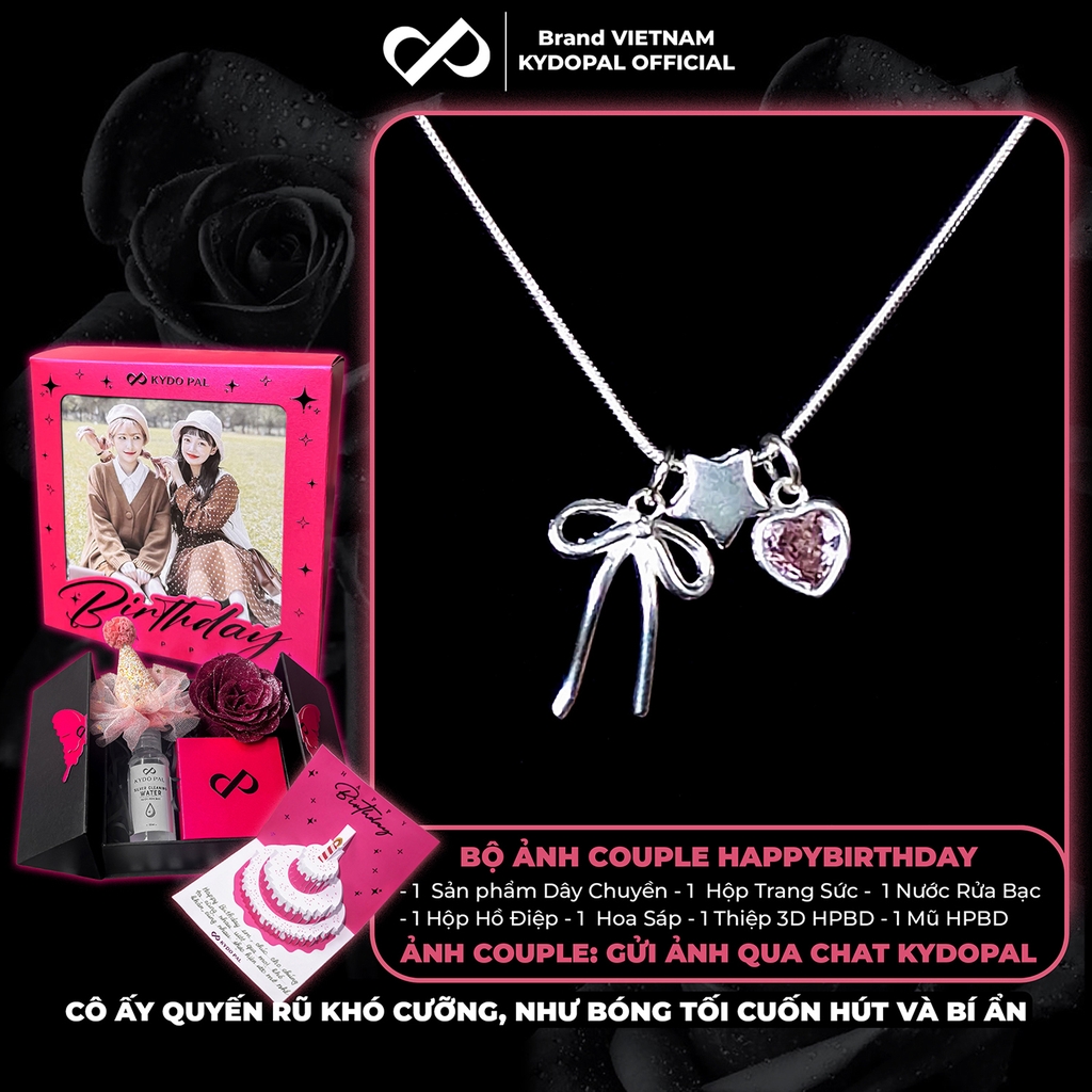 Dây chuyền bạc nữ KYDOPAL cá tính treo Charm nơ thắt, ngôi sao và tim hồng dễ thương - PAL9C3C38