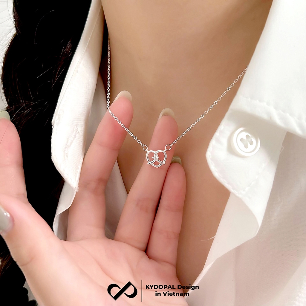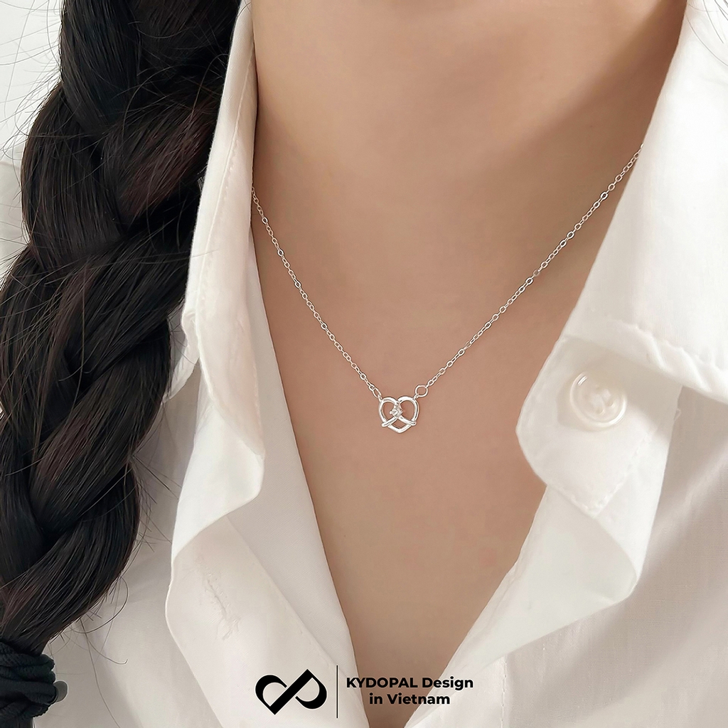 Dây chuyền bạc nữ KYDOPAL mặt trái tim xoắn đá nhỏ cá tính trang sức bạc 925 - PAL9C3C45