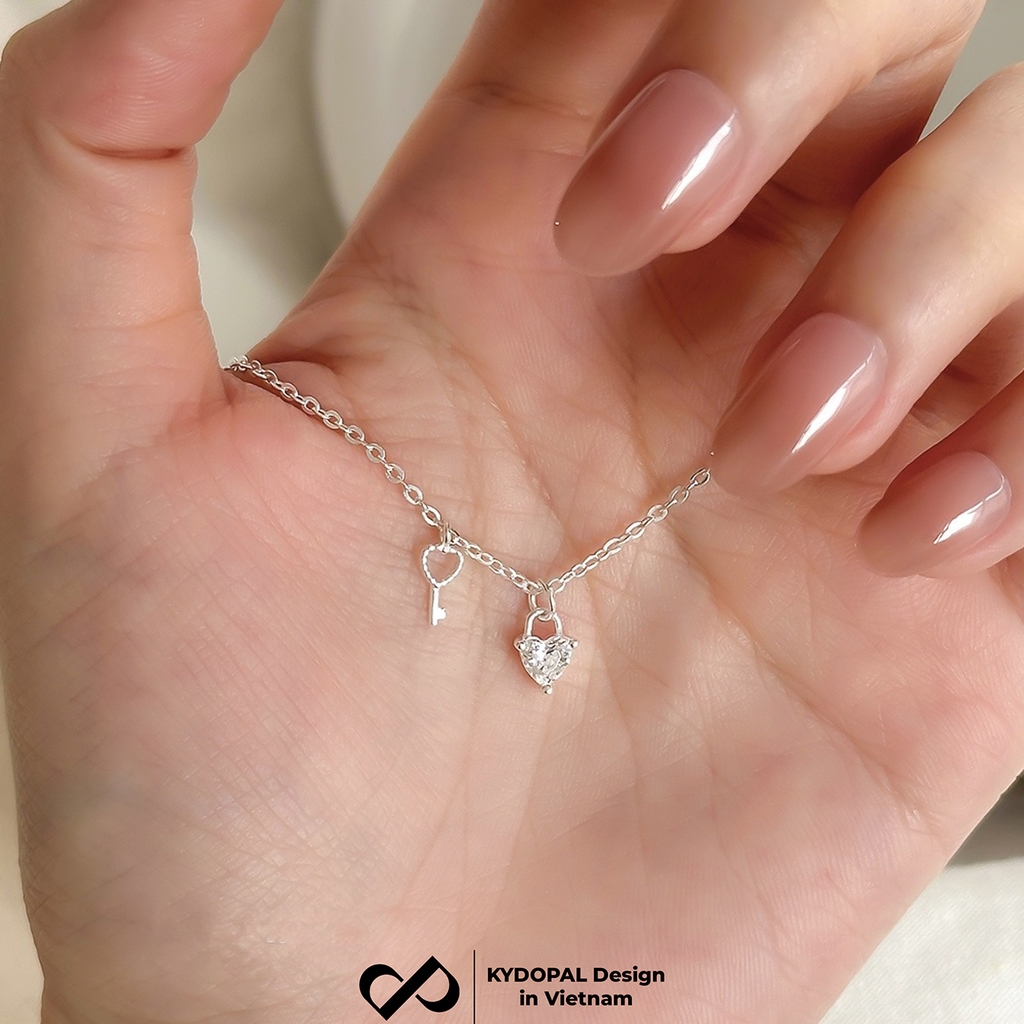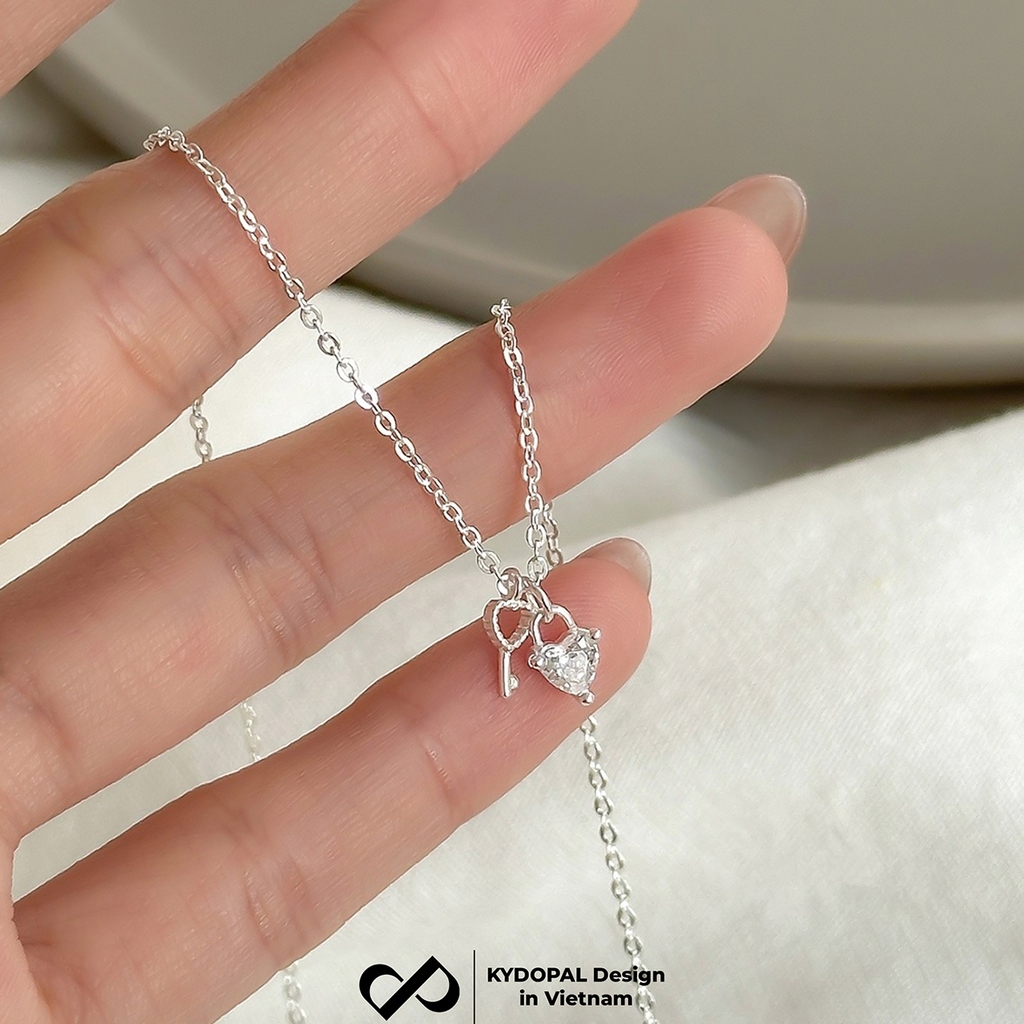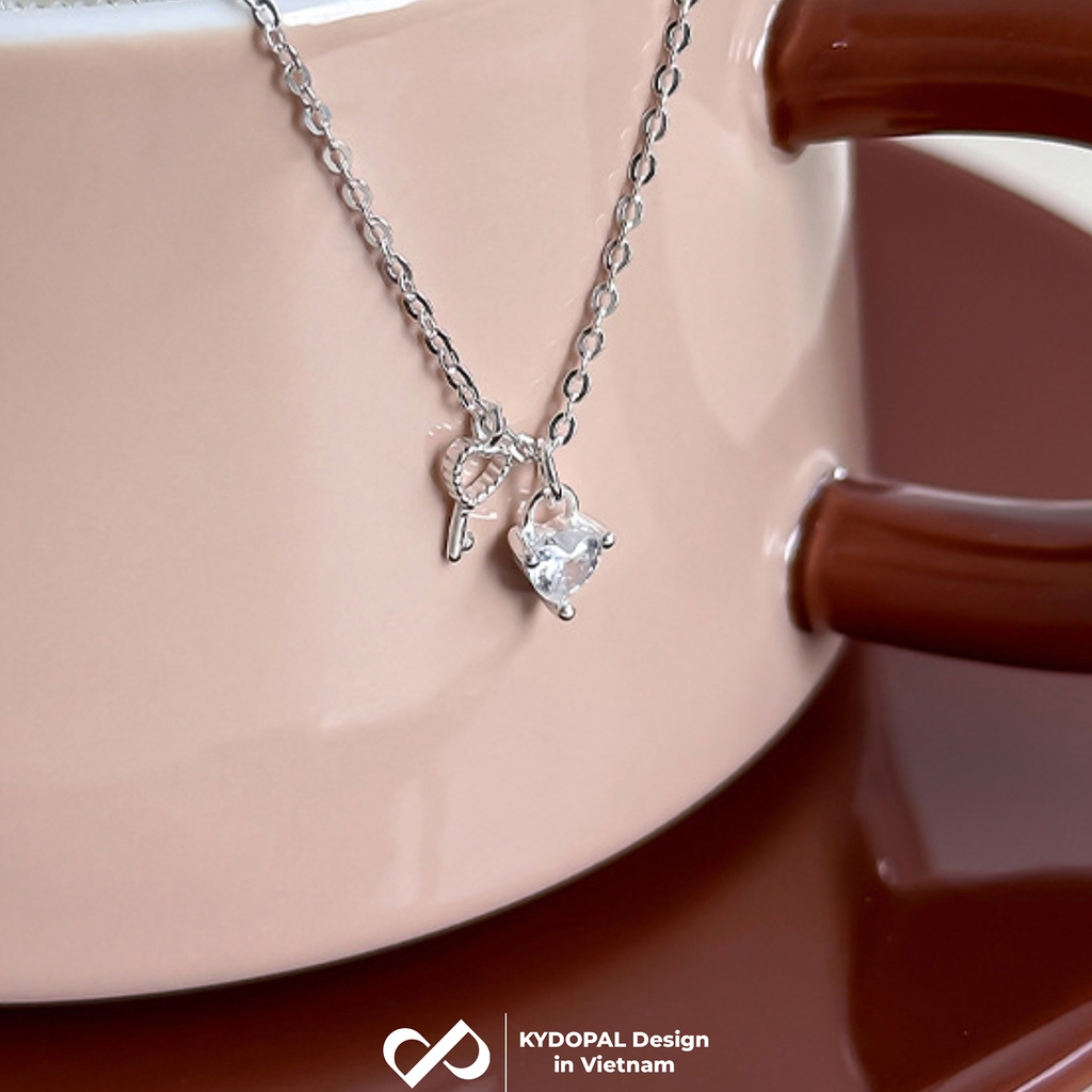 Dây chuyền bạc nữ KYDOPAL vòng cổ cá tính chìa khóa trái tim đá trắng trang sức bạc 925 - PAL9C3C46