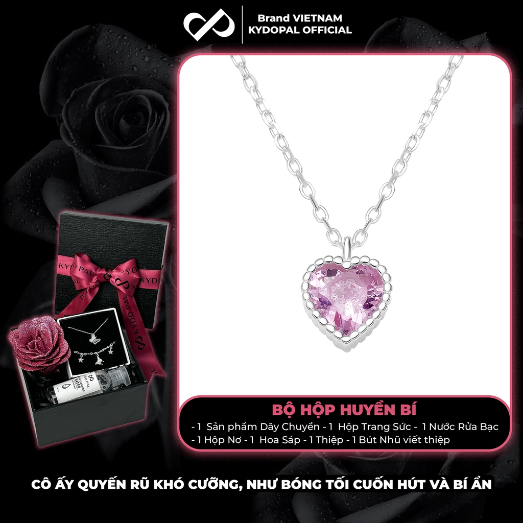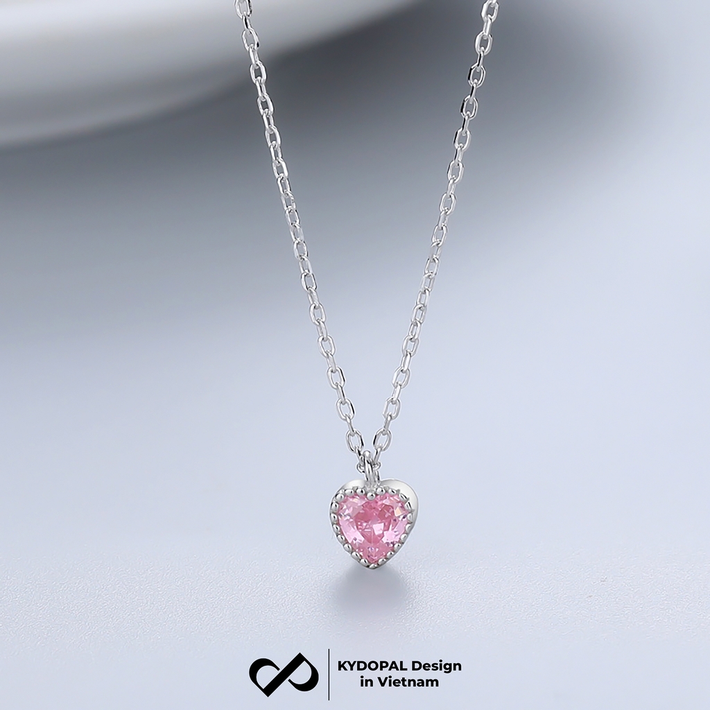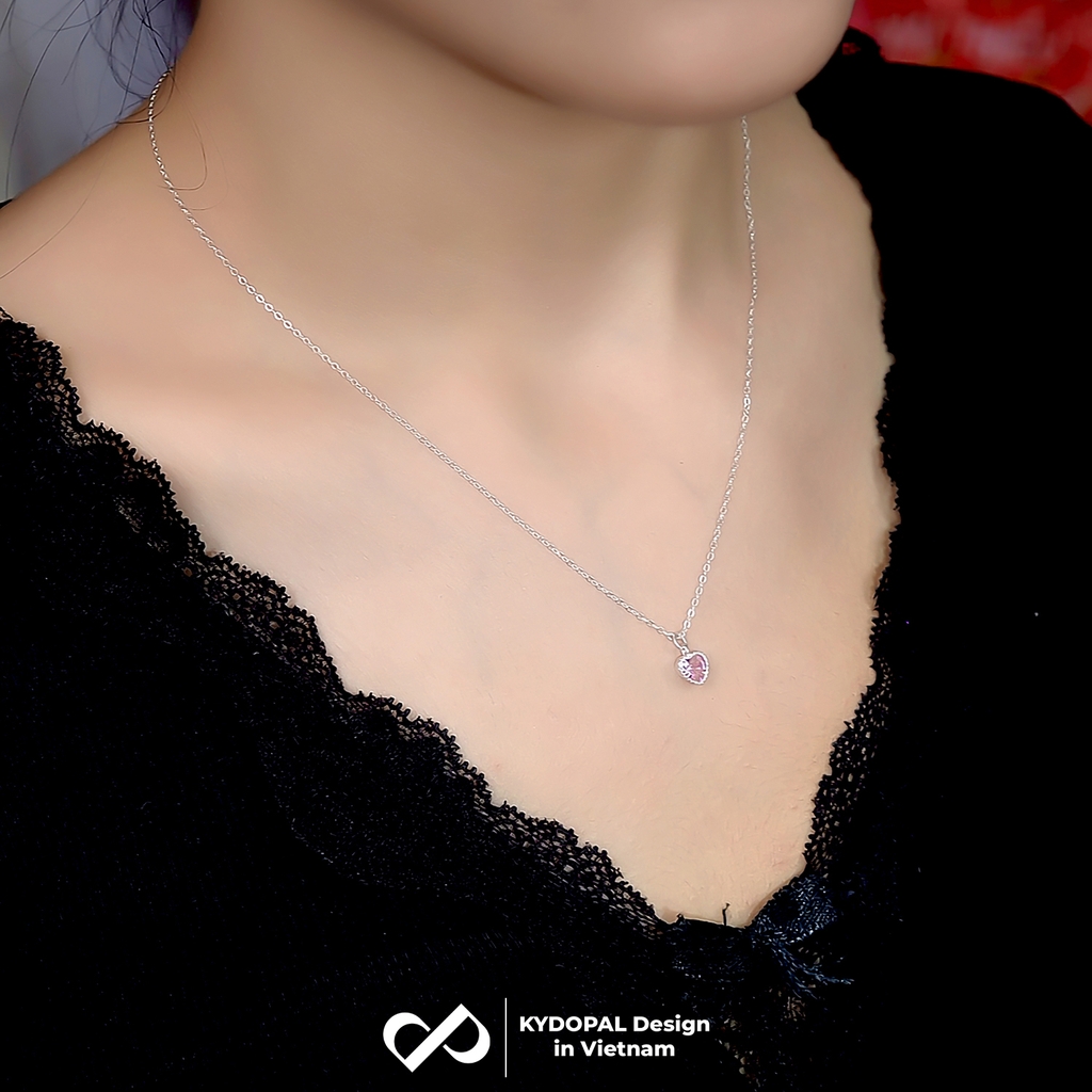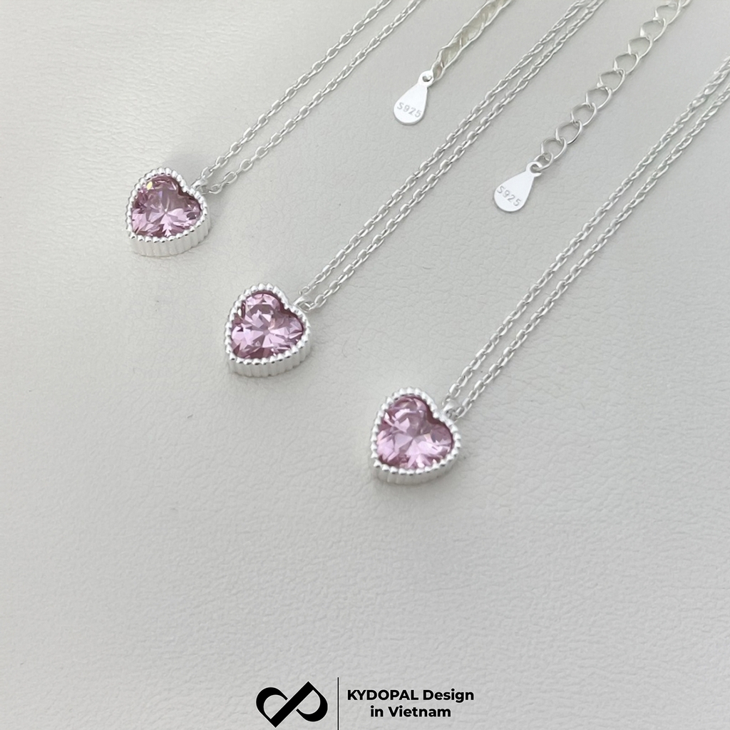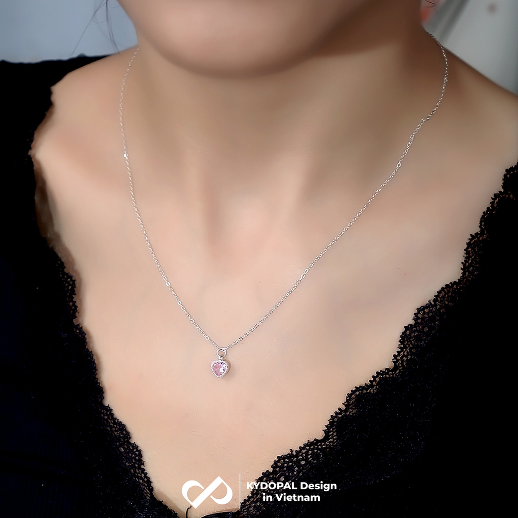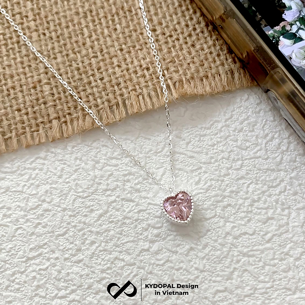 Dây chuyền bạc nữ KYDOPAL mẫu cá tính hạt mix mặt tim hồng blink lấp lánh trang sức 925 - PAL9C3C67