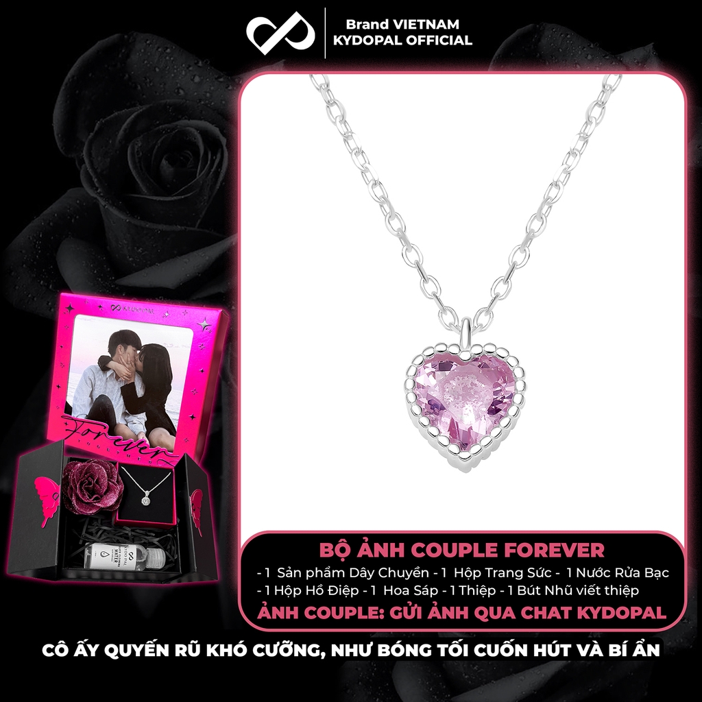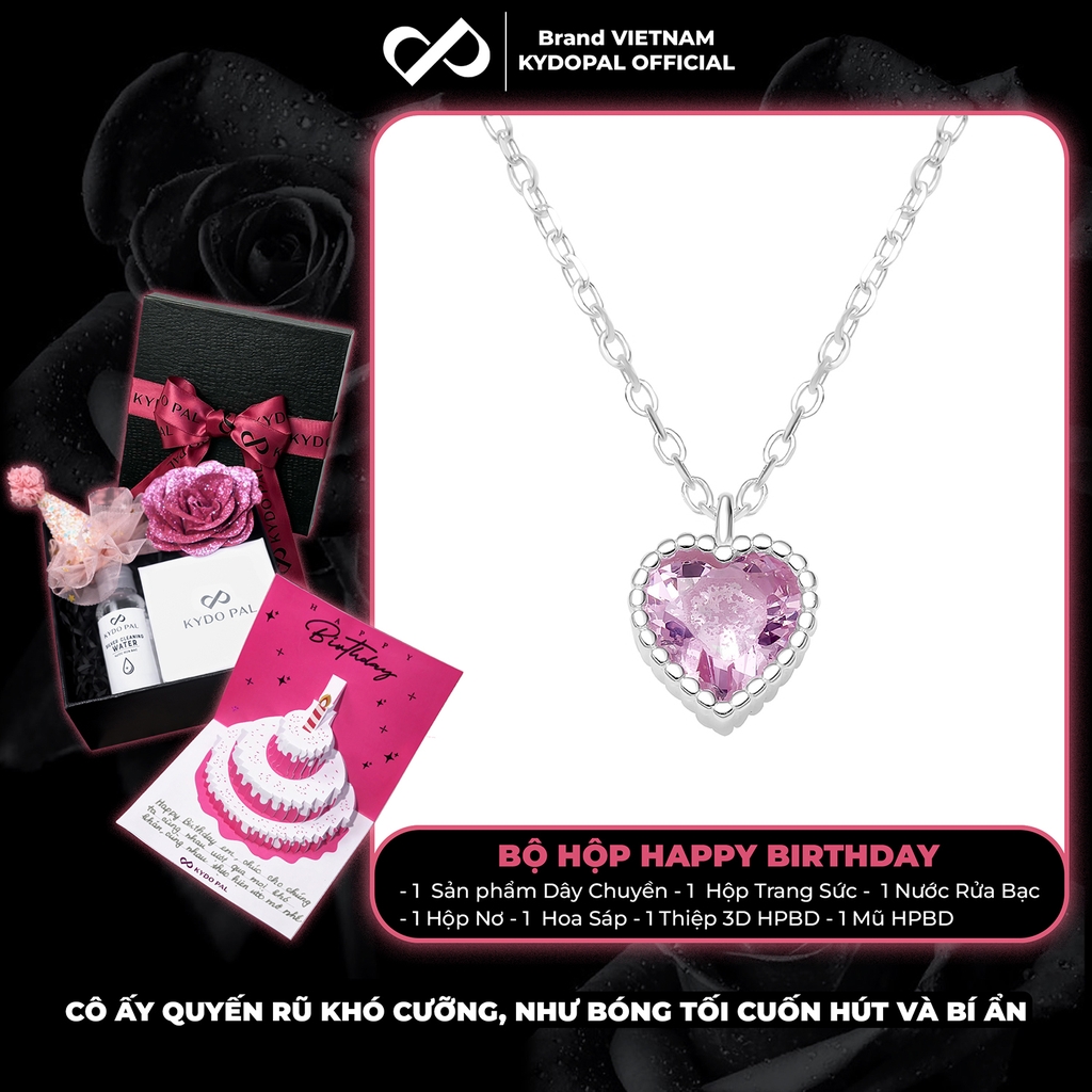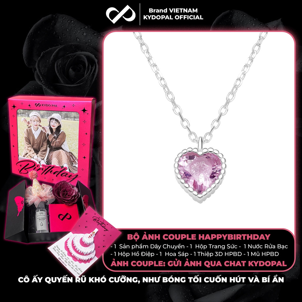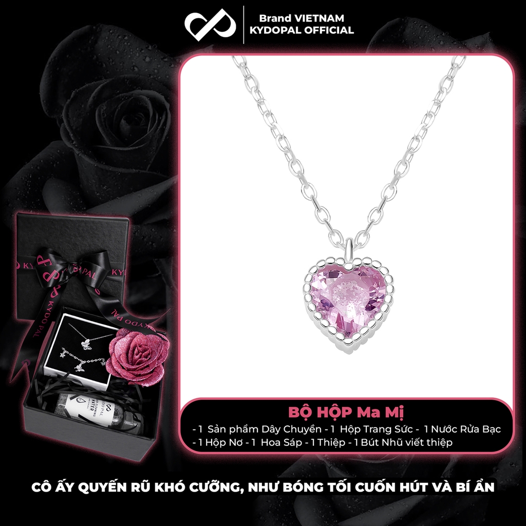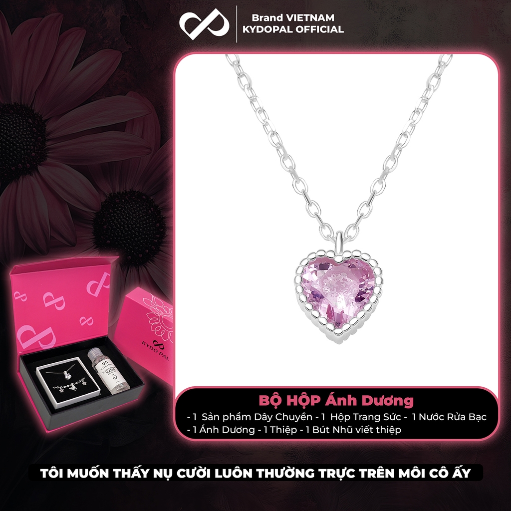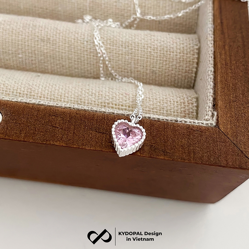 Dây chuyền bạc nữ KYDOPAL mẫu cá tính hạt mix mặt tim hồng blink lấp lánh trang sức 925 - PAL9C3C67