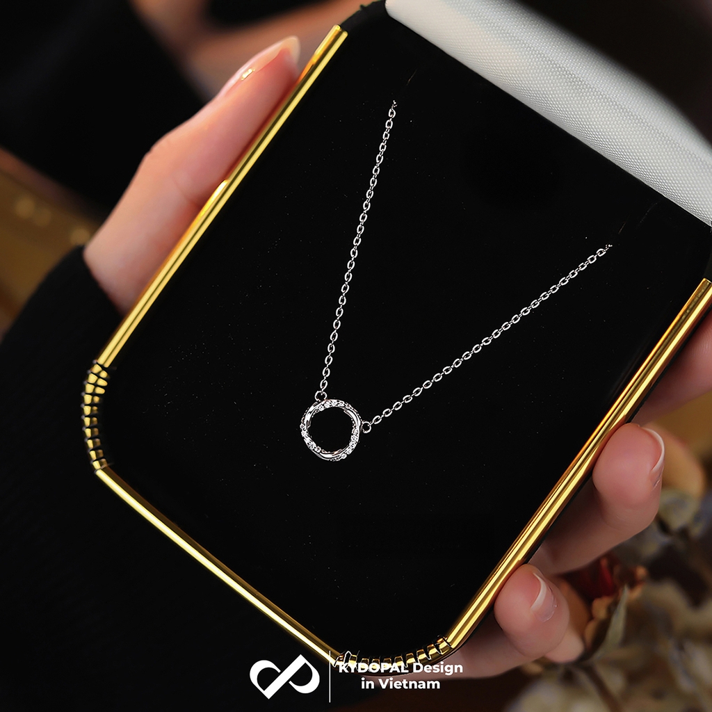 Dây chuyền bạc nữ KYDOPAL mặt tròn cá tính thân uốn đính đá trang sức bạc cao cấp - PAL9C8C1