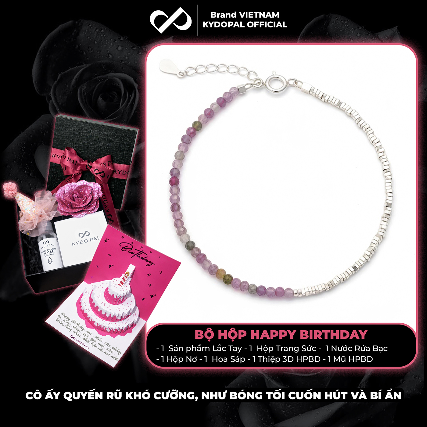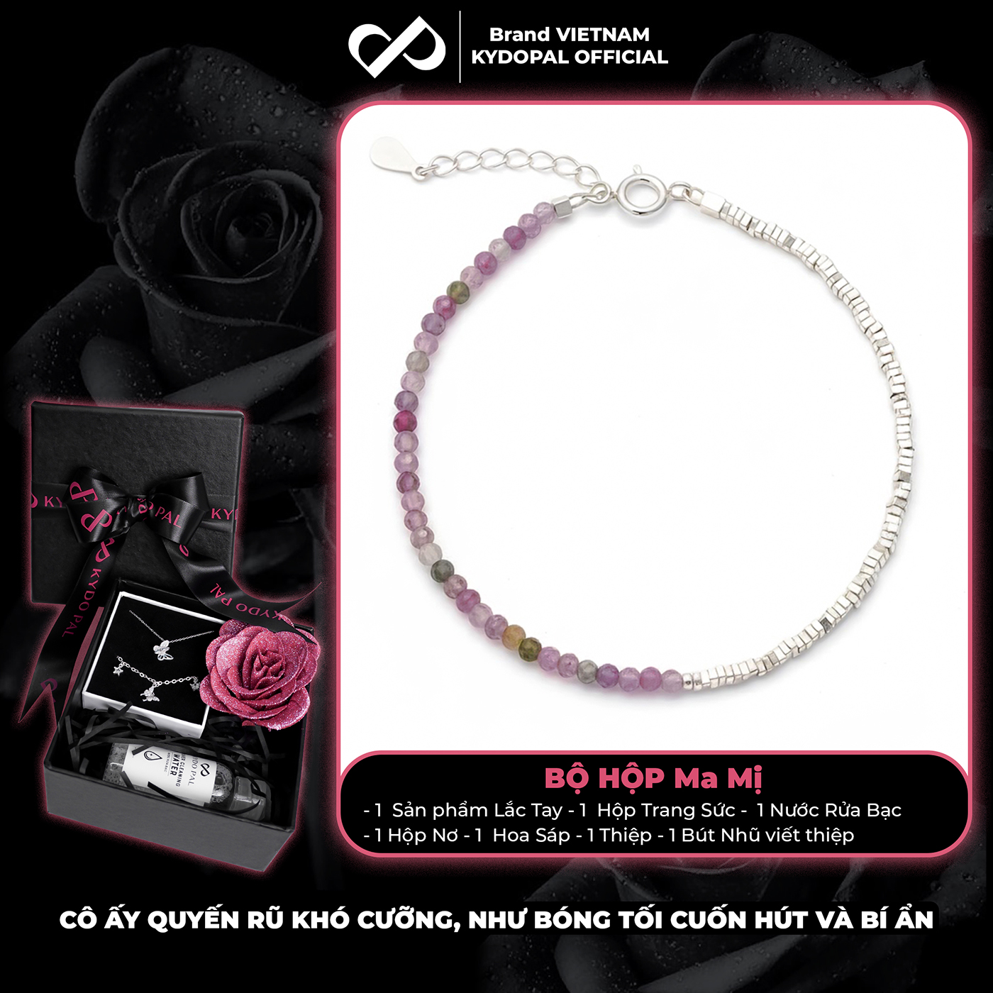 Lắc tay bạc nữ KYDOPAL vòng tay tuamaline hạt đá tròn màu sắc mix hạt bạc vỡ nhẹ nhàng - PAL9C3L24